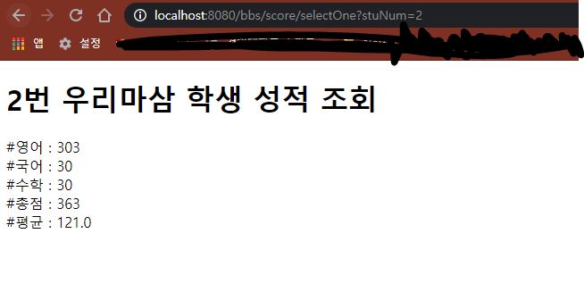 <h1>${stuNum}번 ${stu.stuName} 학생 성적 조회</h1>