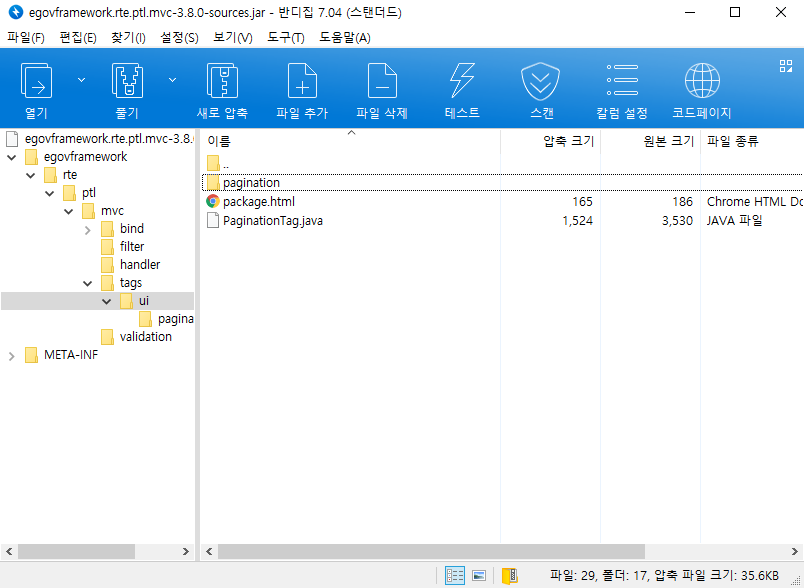 으로 들어가면 egovframework.rte.ptl.mvc-3.8.0-sources.jar 파일이 있습니다. 이 친구를 압축 해제하면